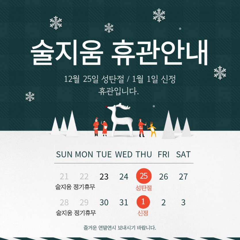 12월 25일 성탄절과 26년 1월 1일 신정은 술지움 휴관입니다.